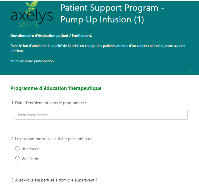 PS : Avant de répondre aux questionnaire le patient doit remplir un consentement libre et éclairé qui sera présenté par le médecin sur lequel Il décrit les modalités de déroulement du programme, et la façon dont les informations seront utilisées car le patient a le choix libre de participer ou pas à ce programme.